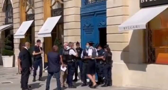 Policija je privela jednog osumnjičenog na parkingu tržnog centra Les Halles u centru Pariza. Policija još uvek traga za trećim osumnjičenim, a o pljački je pokrenuta istraga.