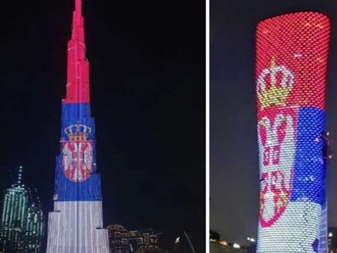 Najviša zgrada na svetu, čuvena Burdž kalifa u Dubaiju, večeras je zasvetlela u bojama srpske zastave.